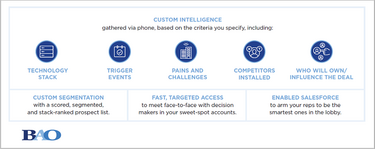 Your sales reps would be able to focus on having relevant, valuable conversations with qualified leads that have real revenue potential. Instead of walking into that first meeting with questions, they’d walk in with answers. And, your marketing team would have valuable insight to execute account-based marketing programs with truly account-specific messaging based not on best guesses but on confirmed market intelligence.