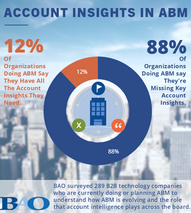 We found that only 12% of companies say they have all the account intelligence they need. This means a shocking 88% of companies doing ABM are missing the most important ingredient for success.