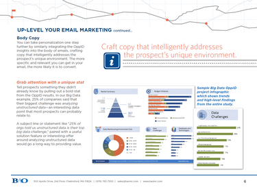 Tell prospects something they didn’t already know by pulling out a bold stat from the OppID results. In our Big Data example, 25% of companies said that their biggest challenge was analyzing unstructured data—an interesting data point that most prospects can probably relate to.