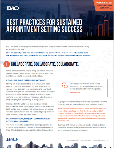 We’re all operating in a dynamic environment: new reps come on board, messaging evolves, your targets shift. Your program needs to remain fresh so it can continue to perform well. Consistent updates in these areas will help BAO create impactful at-bats for your sales team.