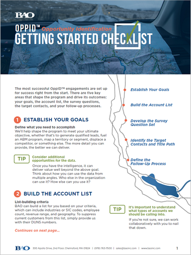 Who will be following up on the intelligence? What’s the process? How are you planning to get the OppID data into your CRM and other systems? How will you make the information available to others who can benefit from it? The earlier your iron these details out, the more successful your program will be. If you’re not sure which questions to ask or how to best to answer them, we’ll guide you through this planning.