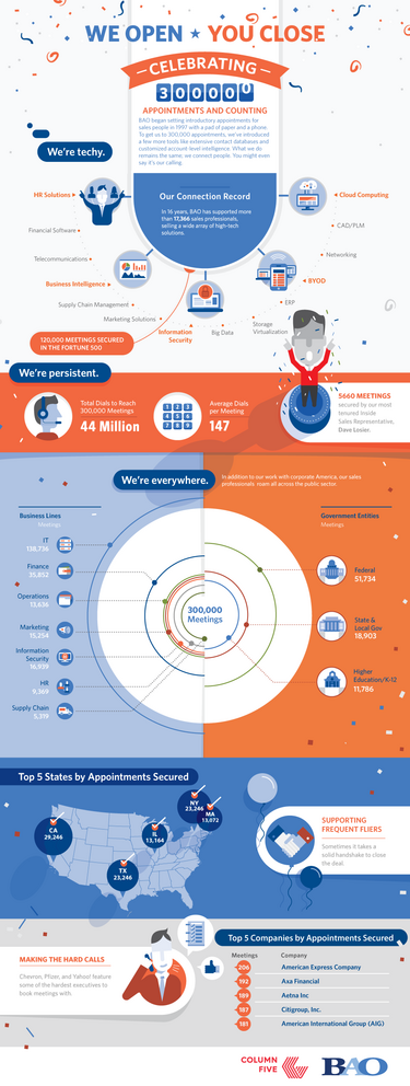 In 1997, BAO began providing appointment setting services for high-tech sales professionals. Things were simple then. Over the years, BAO has evolved and innovated – but at our core, we connect people. You might even say it’s our calling.